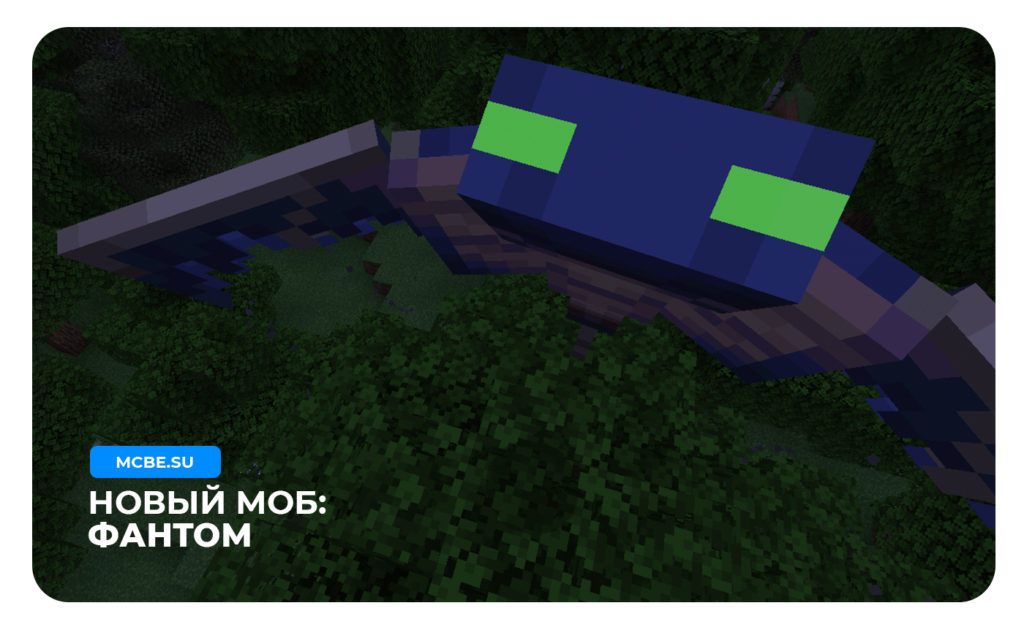 В игру был добавлен Фантом. Это враждебный моб, который спавнится в ночное время суток. Он ищет игроков, которые не спали минимум 3-ое суток. Появляется на высоте 20-35 блоков над головой игрока. Атакует жертву, развивая при этом скорость до 21 блока в секунду!
