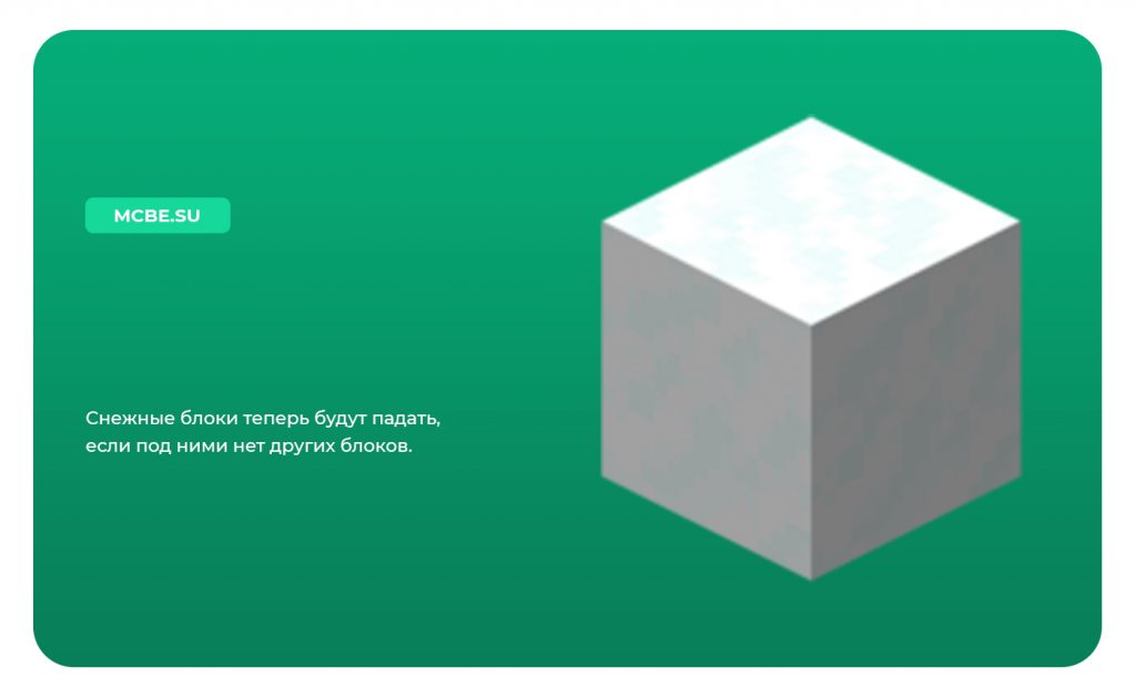 Теперь блоки снега в Майнкрафт 1.17.30.24 падают под силой гравитации, если под ними нет блоков.