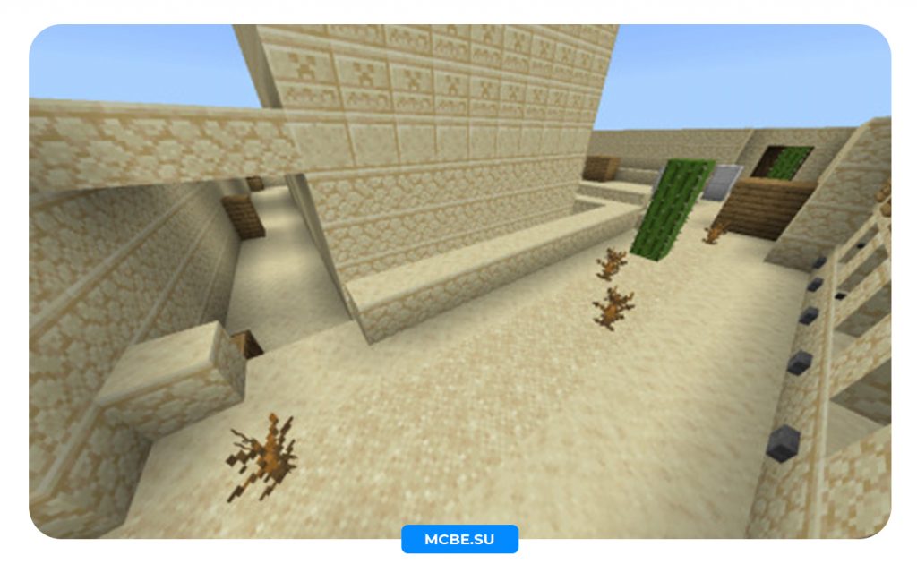 Карта De Dust для Майнкрафт ПЕ, является переделкой настоящей карты из игры CS:GO. На этой карте доступно две команды: Counter Terrorist и Terrorist’s Force. Как только вы присоединитесь к команде, вы получите 15 железных слитков, которые служат в качестве денег для покупки оружия.