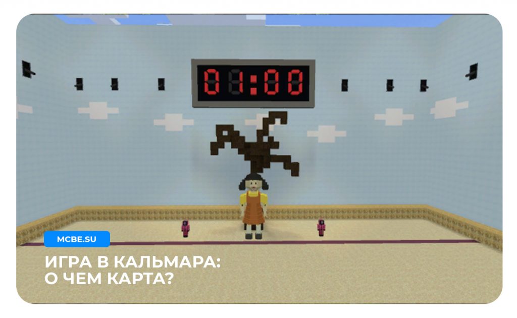 Карта “Игра в кальмара” для Майнкрафт ПЕ (Squid Game) была полностью воссоздана по мотивам набравшего огромную популярность одноименного сериала от Netflix.