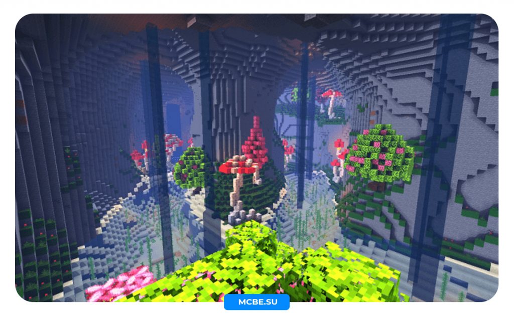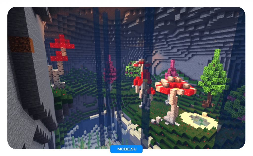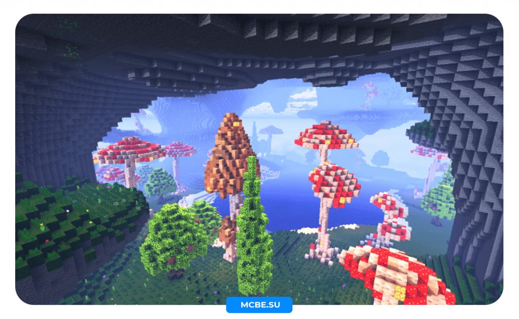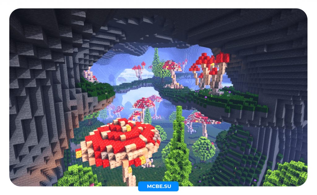 Карта Mushroom Caves Survival в Minecraft PE это большая локации, где вы будете выживать в одиночку или в компании других игроков.