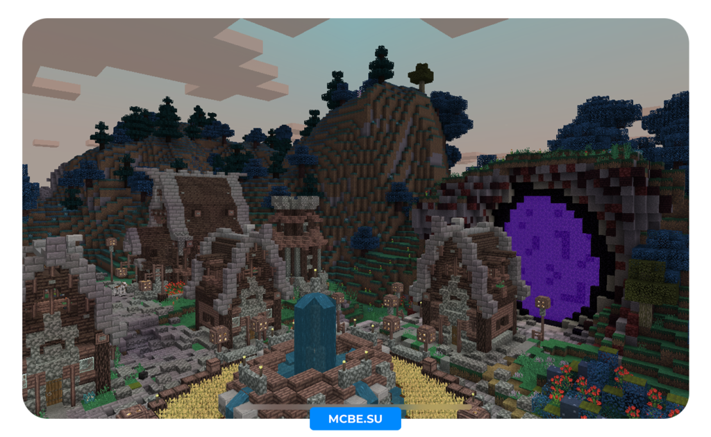 Начните свой следующий приключенческий игровой процесс в маленькой средневековой деревне. Она прекрасно спроектирована с большим количеством милых маленьких домиков, сельскохозяйственных угодий и других красиво спроектированных сооружений. В одном конце города вы найдете большой портал, который приведет вас в Ад. Это действительно идеальная карта, если вы хотите жить в городе, но не хотите выполнять тяжелую работу по его строительству.