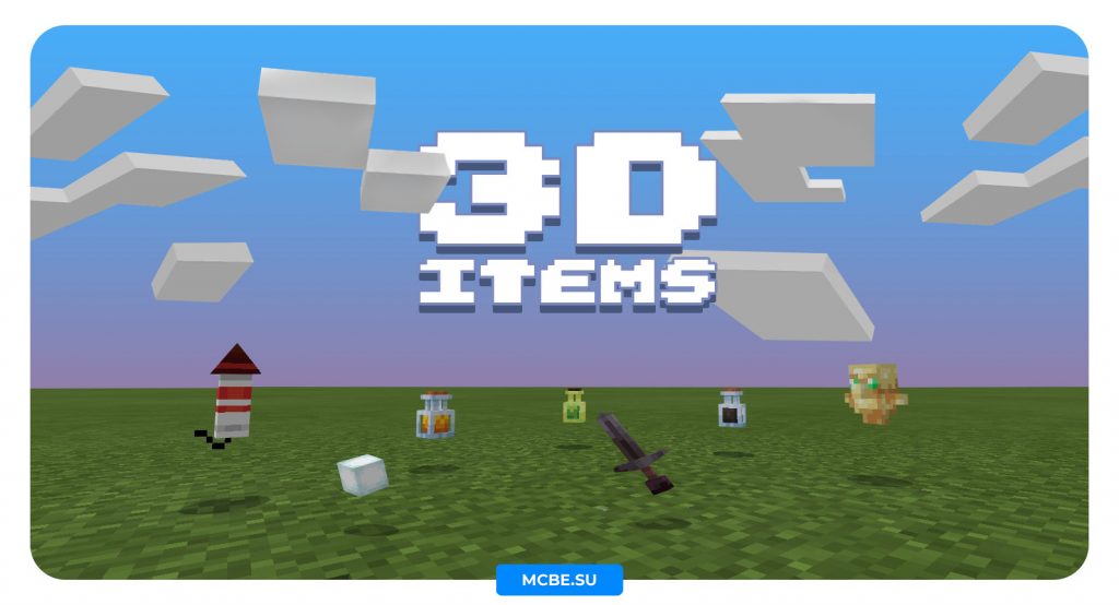 3D Items – это обширный аддон для Майнкрафт ПЕ, который добавляет новое измерение к некоторым предметам в игре. Предметы отображаются в 3D: когда находятся в вашей руке или когда они брошены.