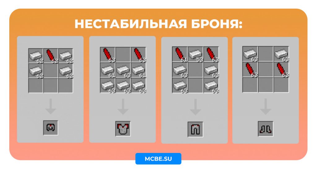 - Нестабильный меч – первый по величине меч, который наносит 6 единиц урона, для создания используйте волшебную палку, нестабильную броню и железо.