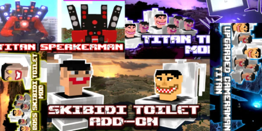 Мод SKIBIDI TOILET CHARACTERS для Майнкрафт добавляет Титанов Камера Менов и уникальных Скибиди Туалетов, которые готовы сразиться друг с другом.