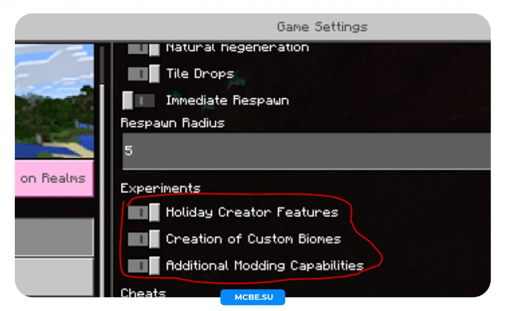 Перед запуском мира, установите настройки экспериментального игрового режима!