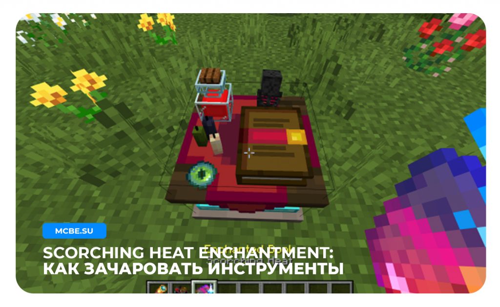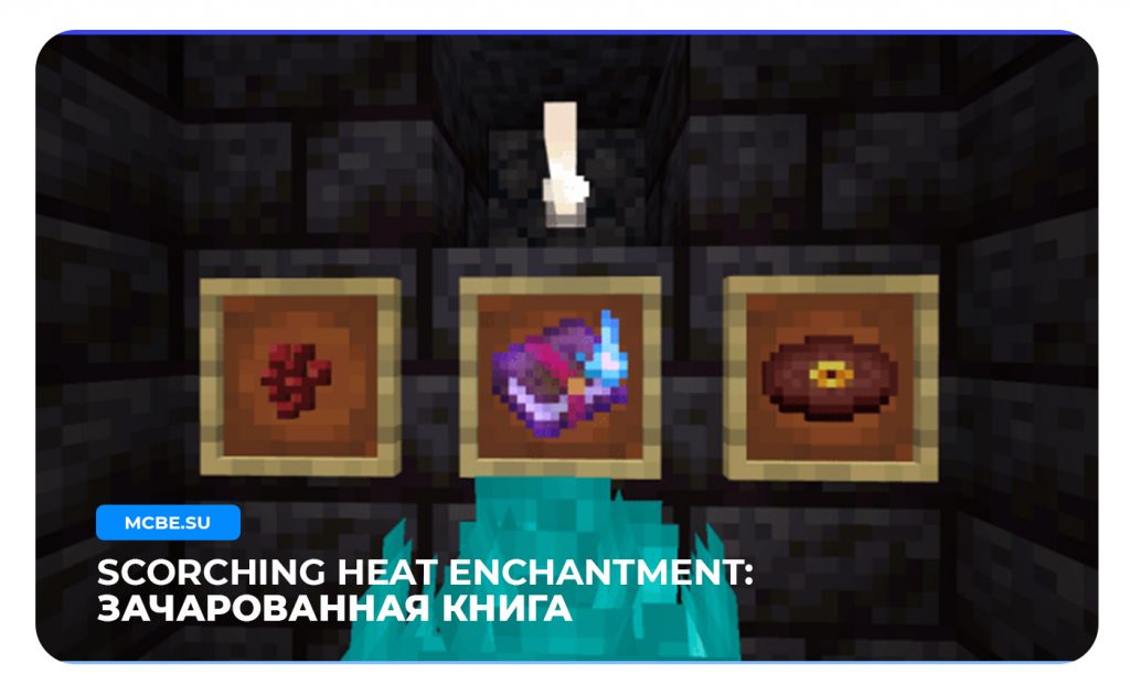 Аддон Scorching Heat Enchantment для Minecraft PE – добавит в игру новое заклинание, которое позволит вам сразу получать переплавленые материалы из выкопанных блоков.