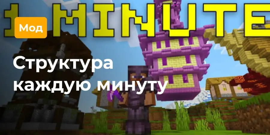 С модом Random Structures Every Minute во время выживания в Майнкрафт каждую минуту будут появляться случайные постройки и структуры.